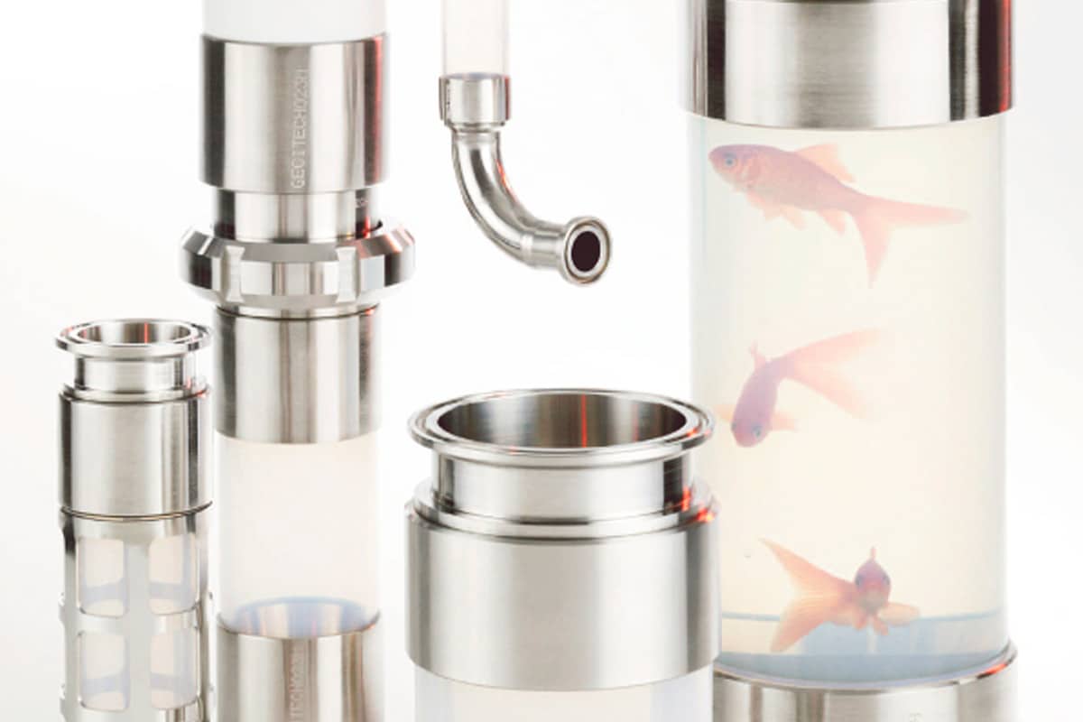 Las partes en contacto con el fluido están realizadas en acero inoxidable CF-3M 1.4404/AISI 316L. Las fundiciones realizadas a la cera perdida y el tratamiento de pulido electroquímico garantizan niveles óptimos de acabado superficial. Bajo pedido se pueden obtener acabados especiales con rugosidades hasta 0,5 μm (excepto tamaños 125/150).