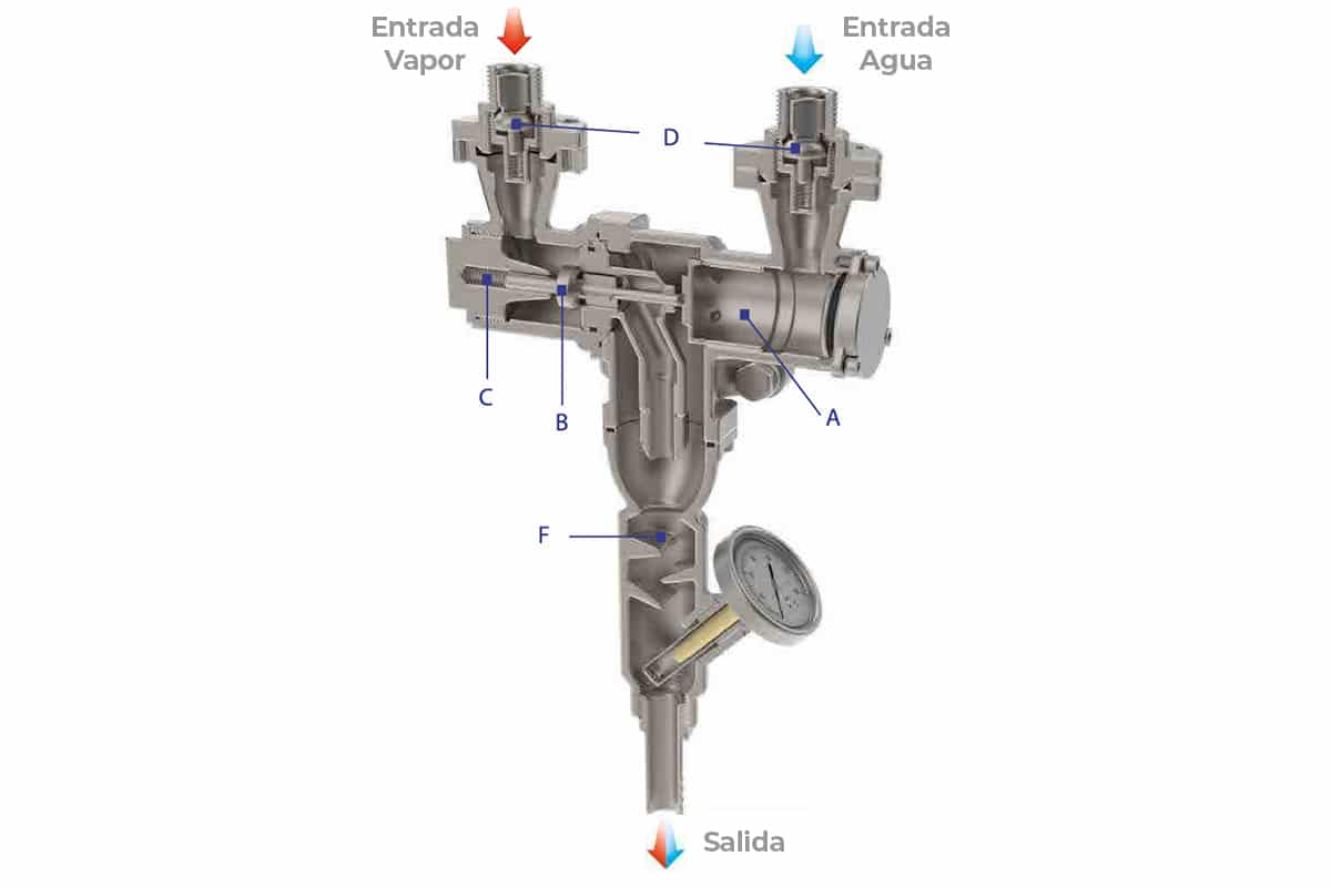 Los mezcladores de agua-vapor “M34” y “M114” son una fuente instantánea y económica de agua caliente a baja presión, que utiliza las redes de vapor y agua fría ya existentes. Seguros, eficientes, versátiles, fáciles de instalar y económicos en el consumo, no requiere de tanques y permite lavar, esterilizar y producir agua caliente de forma barata y efectiva.