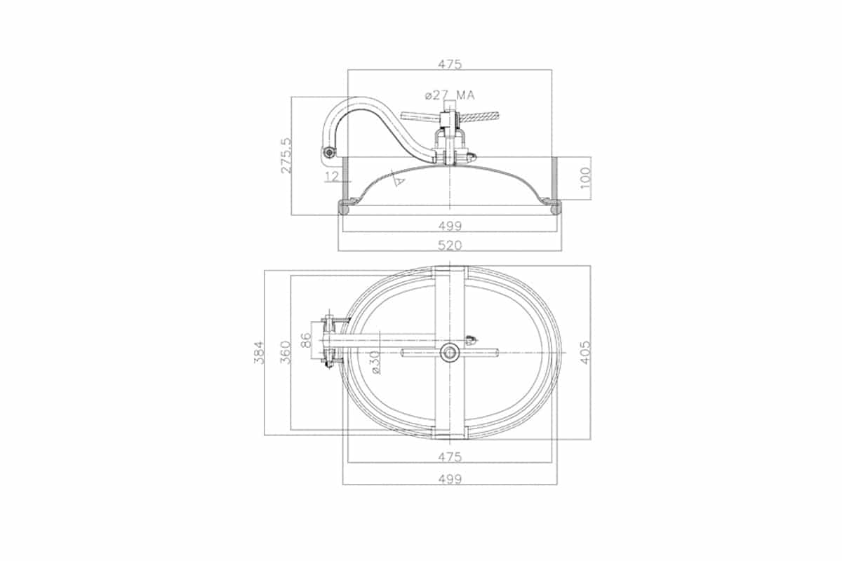 Puerta de presión ovalada con aprobación PED y apertura interna con la posibilidad de que salga la tapa.