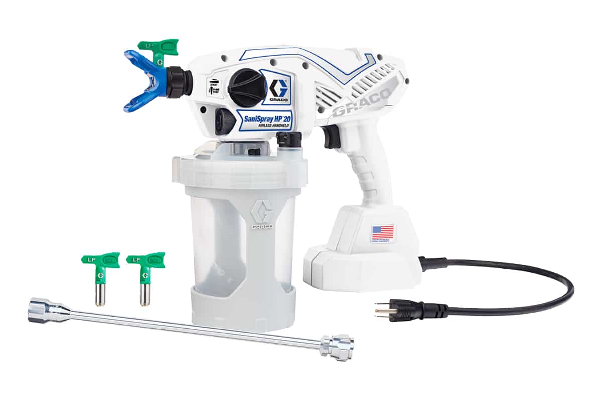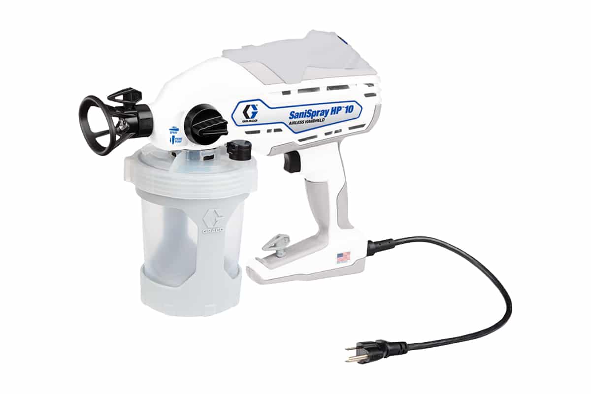 Los pulverizadores eléctricos SaniSpray HP de Graco están diseñados para proporcionar una cobertura uniforme y sin goteos para conseguir el mayor tiempo de desinfección en las superficies. Es compatible con soluciones utilizadas para combatir el COVID-19 tanto basados en alcohol (excepto modelos HP10 y HP20 con cable) como con base de agua.