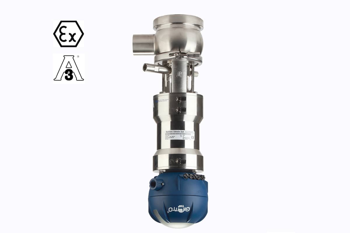 B935 es una válvula de fondo con doble asiento (mix-proof). La válvula dirige y controla el flujo de dos líquidos distintos al mismo tiempo, garantizando su separación total y evitando contaminaciones.